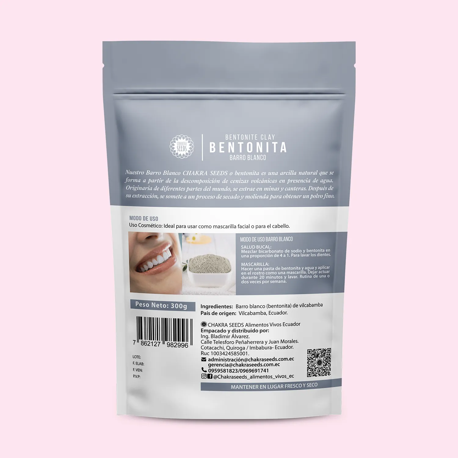 Nuestro Barro Blanco de Vilcabamba o Bentonita, es el nombre comercial con el que se conoce a una arcilla de origen natural que usa desde la antigüedad con fines medicinales y cosméticos debido a la alta cantidad de minerales que contiene. Se puede utilizar externamente como cataplasma de arcilla, en recetas de cuidado de la piel. Tiene un efecto alcalinizante y desintoxicante en el cuerpo, fortalece el sistema inmune y reduce la inflamación.