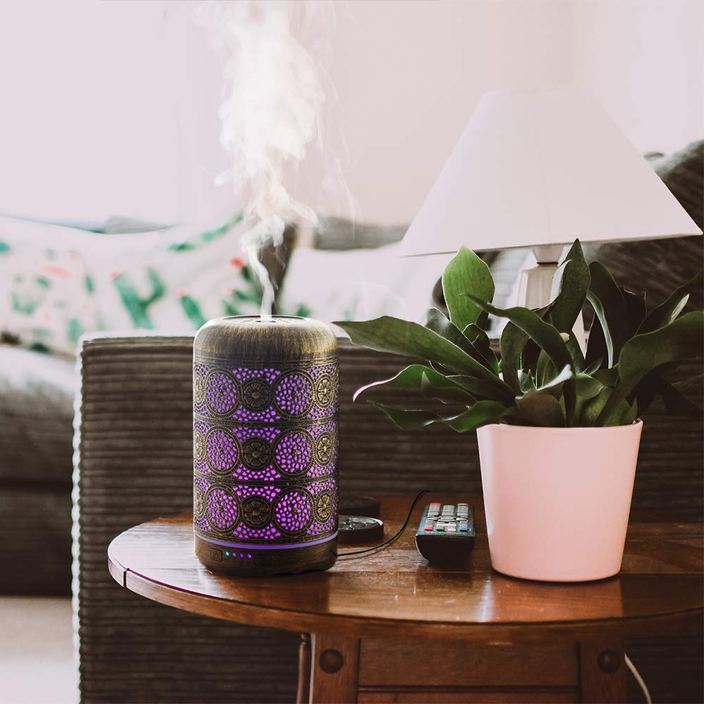 Nuestro Difusor de Aroma Metálico Envejecido Dorado mod. 2 que trae CHAKRA SEEDS es un dispositivo diseñado para dispersar fragancias y aceites esenciales mediante la evaporación de líquidos aromáticos (el aceite esencial disuelto en agua) desprendiendo permanentemente vapor llenando el espacio con un delicado aroma. No hierve ni calienta el agua, vaporiza con imperceptibles ondas de sonido, lo que lo hace muy seguro. Contiene un temporizador que te permite programarlo. Además, si se queda sin agua se apaga automáticamente. Algunos vienen con un sistema de iluminación integrado. Crea ambientes aromáticos y agradables, promoviendo la relajación, reduciendo el estrés, mejorando el estado de ánimo y purificando el aire.