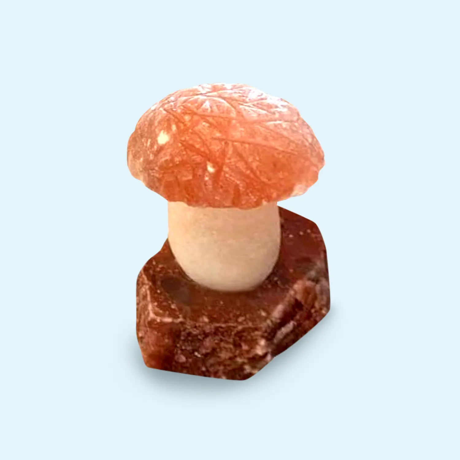 Nuestra exclusiva Lámpara de Sal Rosada del Himalaya Hongo modelo 2 (TAPA DISEÑO), es una joya única en color y forma. Esta lámpara se crea a partir de piedras de sal, especialmente de la sal del Himalaya con su distintivo color rosado, formada a lo largo de más de 250 millones de años. Después de ser cuidadosamente perforada y pulida, se transforma en una encantadora lampara en forma de Gota de Rocío. Al colocar una bombilla o foco incandescente en su interior la lámpara se ilumina, creando un espectáculo visual. Este ambiente relajante y armonioso se logra gracias a las propiedades ópticas del mineral